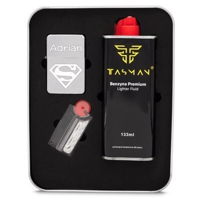 Zapalniczka Benzynowa Srebrna z Grawerem ZESTAW