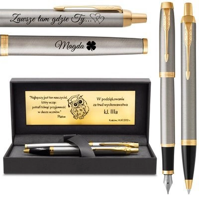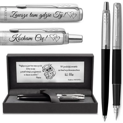 Zestawy prezentowe Parker z grawerem — pióro i długopis