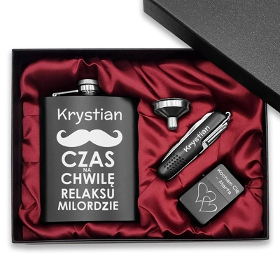 Piersiówka Stalowa 240ml Zestaw Scyzoryk Zapalniczka z GRAWEREM PREZENT