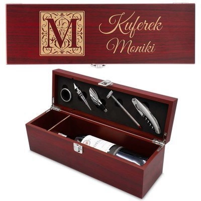 Zestaw do wina Pudełko Skrzynka z GRAWEREM 5 el.
