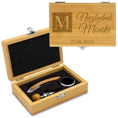 Zestaw do wina bambusowy na prezent z GRAWEREM