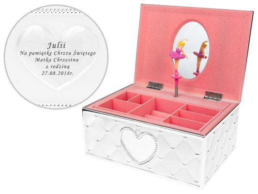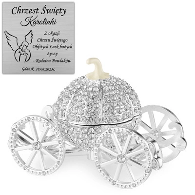 Srebrne szkatułki na chrzest to ponadczasowe rozwiązanie, które nie dość, że pięknie wygląda, to dodatkowo jest bardzo funkcjonalne! Rodzice i dziecko będą tam przechowywać drogocenne dla nich przedmioty. Dzięki personalizacji srebrnej szkatułki możesz mieć pewność, że trafisz w dziesiątkę. Możesz wybrać, co tylko zechcesz - życzenia, cytat, może imię dziecka, datę?