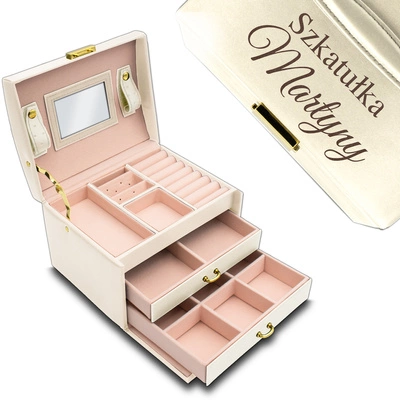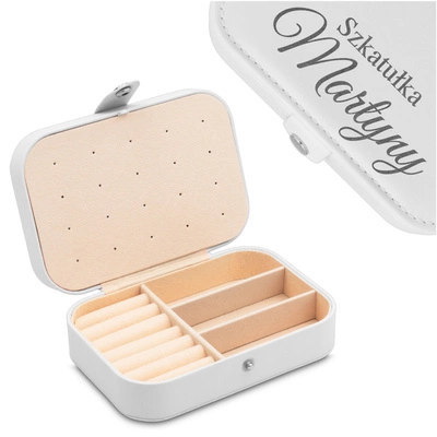 Personalizowane kuferki na biżuterię ze skóry sprawdzą się jako prezent z okazji urodzin, imienin, rocznic czy świąt, a także jako podarunek dla panny młodej czy dziewczyny na specjalną okazję. Są eleganckie, ale niezobowiązujące i bardzo praktyczne. Tym samym doceni je każda miłośniczka piękna. Skórzane szkatułki na biżuterię to również doskonały prezent dla młodej dziewczyny, która zaczyna swoją przygodę ze świecącymi detalami – często też o dużej wartości materialnej i sentymentalnej. Drogocenne elementy muszą być przechowywane w odpowiedni sposób, by zawsze stać się najpiękniejszą ozdobą ciała. To niewątpliwie będzie dodawać pewności siebie i sprawi, że eksponowane piękno będzie przyciągać uwagę. Nadanie szkatułce prywatnego charakteru poprzez grawer sprawi, że to będzie element wystroju bardzo bliski sercu, a także najlepsza pamiątka. Zobacz, które personalizowane kuferki na biżuterię ze skóry będą świetne dla Ciebie lub bliskiej kobiety.