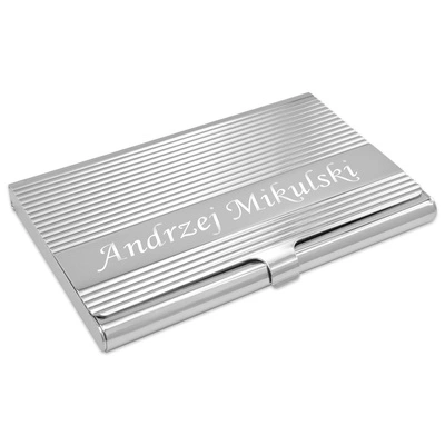 Dodatkowo, wizytowniki metalowe z grawerem, jako unikatowe przedmioty przygotowane na zamówienie, są wyrazem sympatii i szacunku. Grawer może zawierać nazwę stanowiska i firmy, imię i nazwisko, logo firmy, ulubiony cytat lub krótką sentencję. Dzięki temu możesz stworzyć etui na wizytówki, które przydaje się podczas spotkań i podróży służbowych oraz na co dzień w pracy i które pozwala na wygodne przechowywanie wizytówek i kart płatniczych. Szczególnie polecamy wygrawerować inicjały — w ten sposób etui będzie uniwersalne i przyda się zawsze, nawet wtedy, gdy zmieni się pracę.