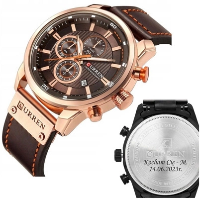 Zegarek męski CURREN Skóra Coffe Gold z GRAWEREM