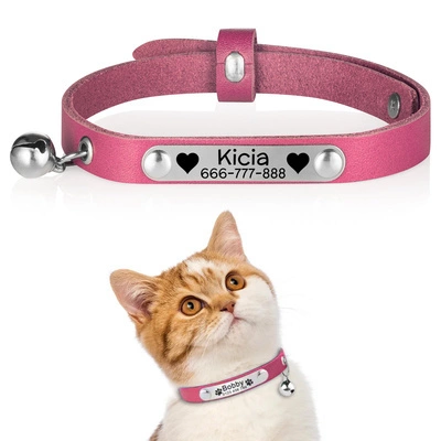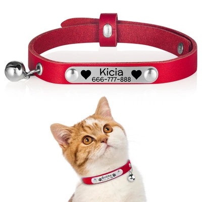 Obroża dla Kota Skórzana Dzwoneczek z GRAWEREM P1