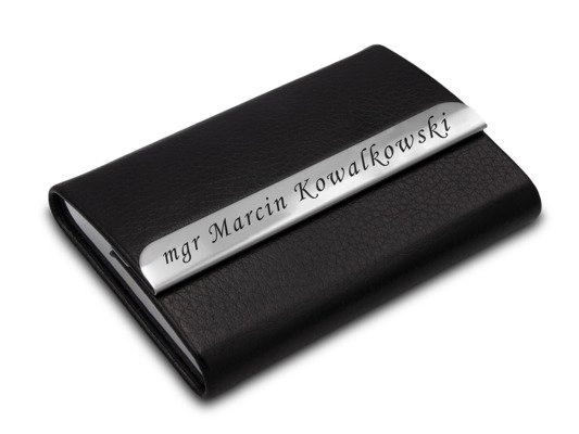 Wizytownik Skórzany B2 czarny z GRAWEREM