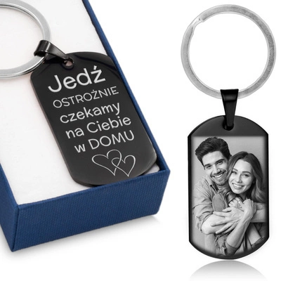 Brelok do kluczy z GRAWEREM zdjęcia Stalowy na Prezent Czarny